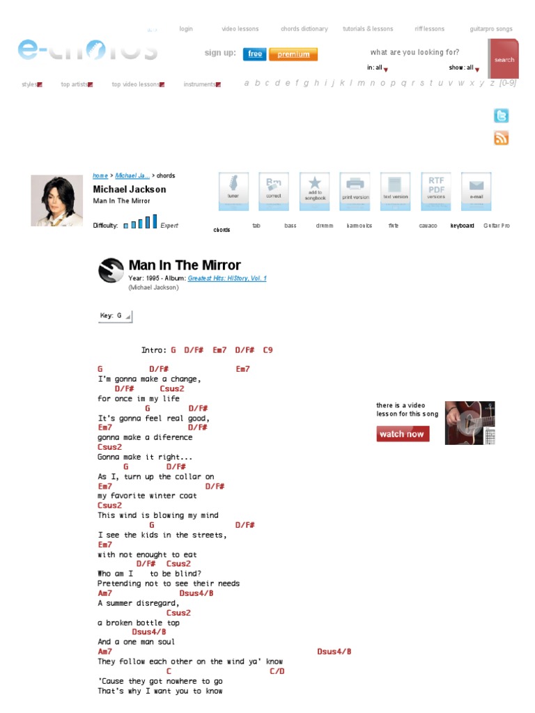Bad 1987 tabbed by. Man in the mirror michael jackson written by. I see the kids g in the streets d f. Man in the mirror chords.