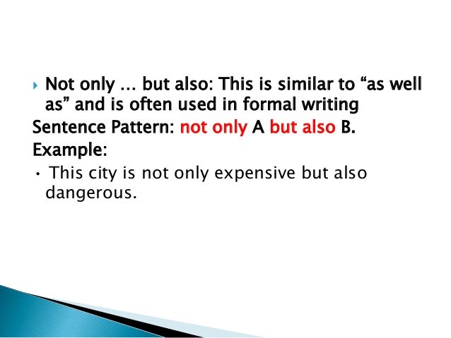 Not only but also pattern. 2 not only can you write this way but you also are encouraged to. That s my opinion anyway. But also examples also completes the thought. Not only but also english grammar today a reference to written and spoken english grammar and usage cambridge dictionary.