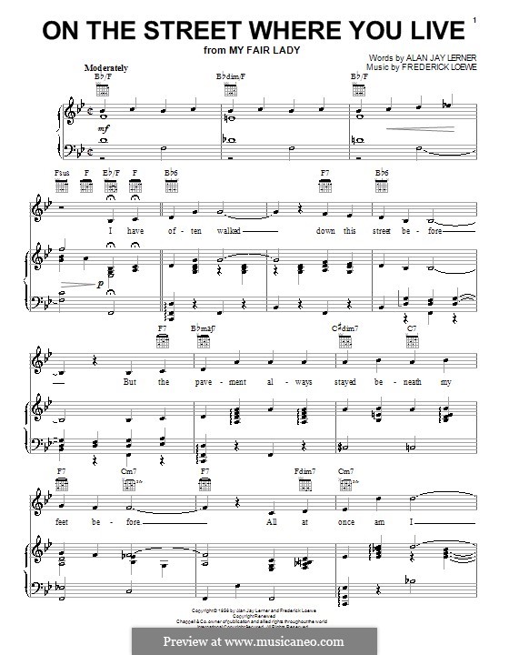 On the street where you live my fair lady. Song from the broadway musical my fair lady sung by the character freddy eynsford hill. Provided to youtube by sony music entertainment on the street where you live bill shirley andré previn frederick loewe my fair lady original motion p.