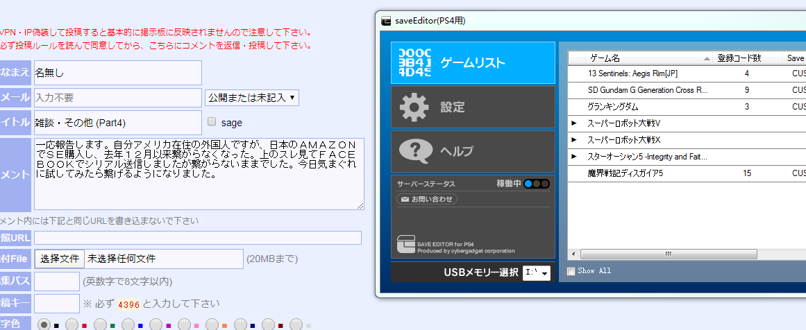 Ps4へlinux導入し起動 5 psvrを本体のアップデートなしに使用可能 6 psn接続なしでのリモートプレイ 永続的ではない pcやスマホからは不可 vitaのみ 7 チート行為 8 セーブデータのバックアップと復元 同じアカウントで同じ本体のみ 改造しても出来ないこと. セーブデータの改造やチート modは最悪banの可能性があります ゲームのバックアップも最悪banの可能性があります 何が起きても全て自己責任でお願いします これらを理解したうえでご利用ください ブルーレイドライブハックについて 自作ソフト homebrew とは. セーブデータ改造ツール は フリー ソフト ですので どなたでも 無料で 無期限に使用することが出来ます ファイルを変更しなければ 再配布も自由です 使ってみて 便利だったら まわりの方にも勧めて下さい 注意 但し 利益目的の再配布は制限があります return index.
