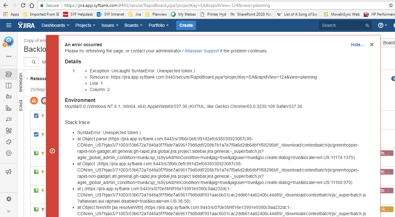 Invalid or unexpected token in console.