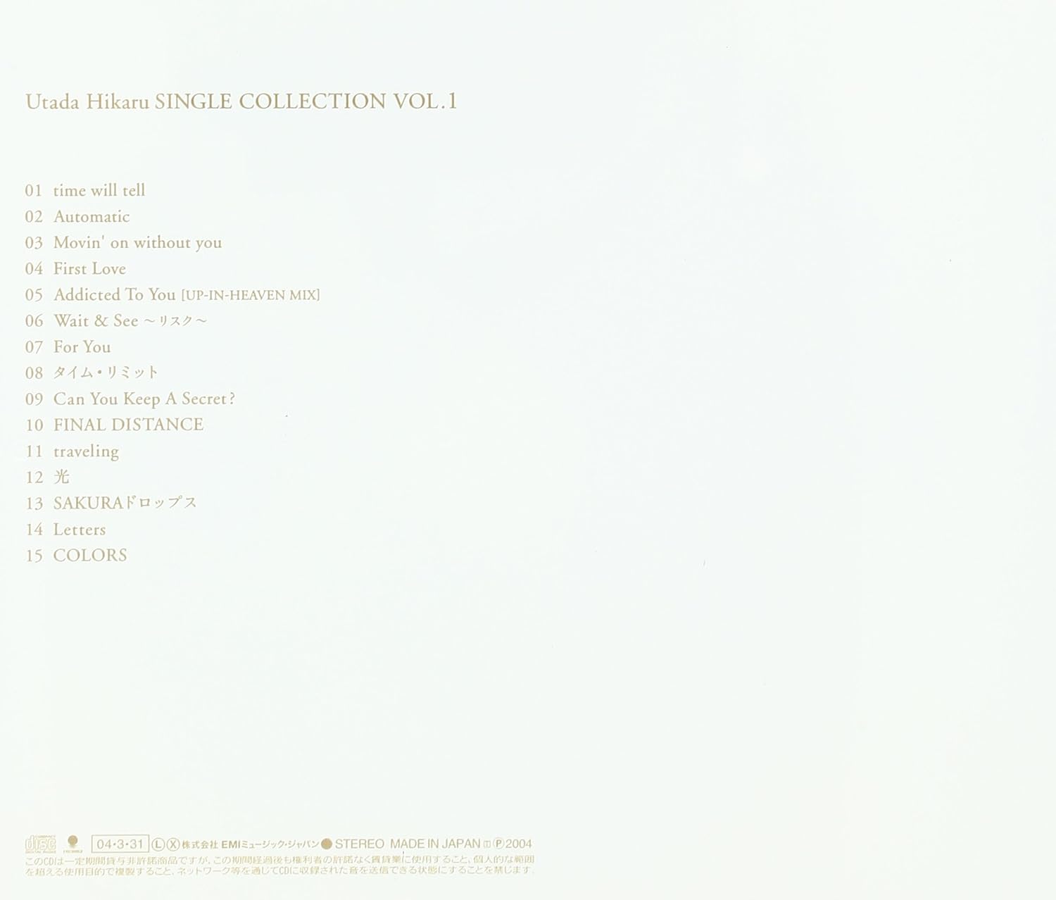 Utada Hikaru Single Collection Vol 1